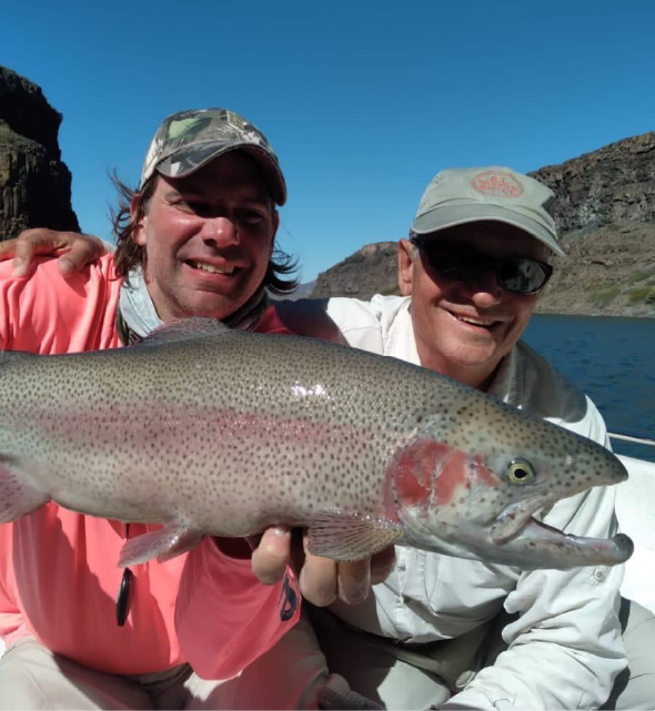 The high-quality water, perfect temperature, and abundant food supply in the lake produce a significant number of large fish. Expect to target big rainbows and impressive brown trout during your visit. Our guides will take you to excellent spots, including sight fishing over banks, cut banks, bays, and side channels. Boat rides are short as we are located in the prime fishing area of the lake. The landscape includes bays, rocky shores, cliffs, and stone points, spanning over 25 km of shoreline.